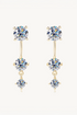 Set with D-color, VVS1 clarity moissanite stones in graduated sizes of 5 mm, 4.5 mm, and 3 mm, the earrings deliver exceptional fire and clarity from every angle. Crafted from 925 sterling silver and finished with 14k gold plating, they offer a sophisticated balance of everyday elegance and statement appeal.
